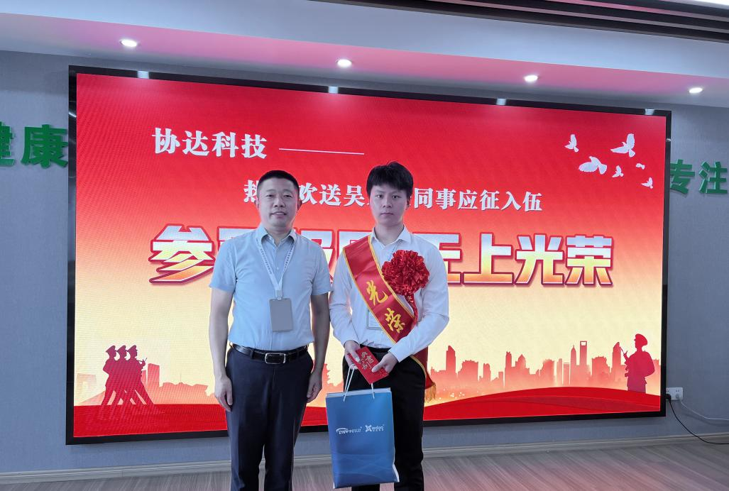 最后,陳總表達了對他殷切的希望,期望他不負囑托、努力拼搏,在軍營里譜寫出無悔壯麗的青春!并承諾協(xié)達的大門永遠為你們敞開,公司將保留入伍員工的崗位,退伍之后可隨時回崗,協(xié)達期待你們早日立功的喜訊!