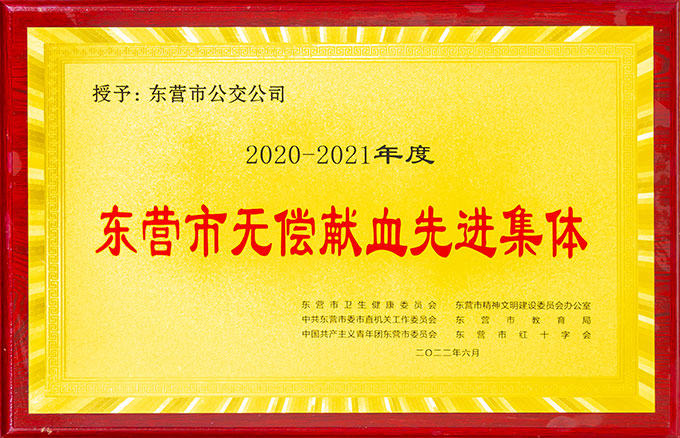 東營(yíng)市無(wú)償獻(xiàn)血先進(jìn)集體