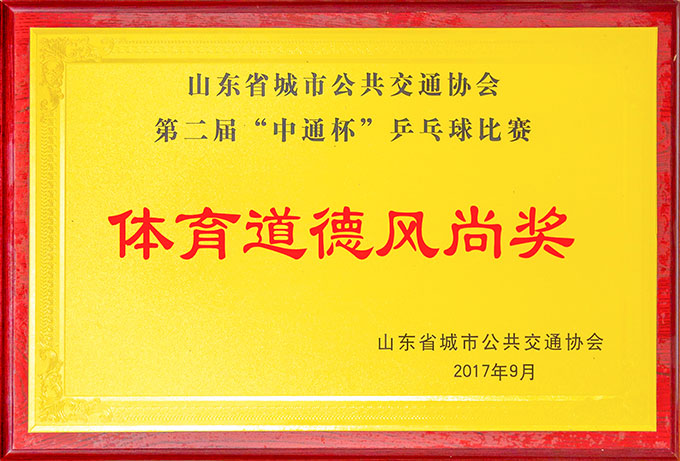 第二屆“中通杯”乒乓球比賽體育道德風(fēng)尚獎(jiǎng)