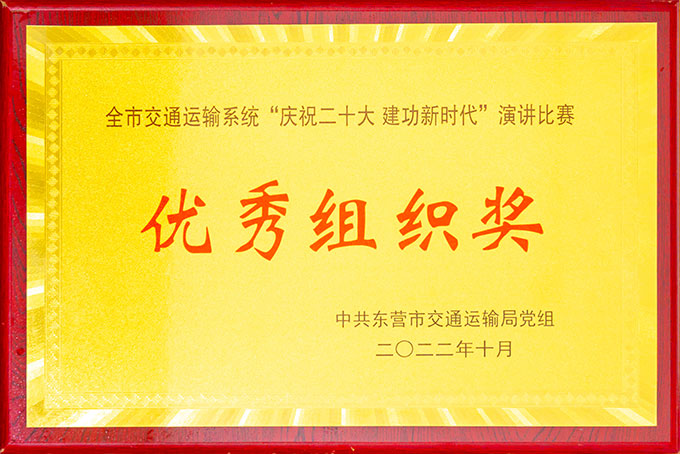 全市交通運(yùn)輸系統(tǒng)“慶祝二十大 建功新時(shí)代”演講比賽優(yōu)秀組織獎(jiǎng)