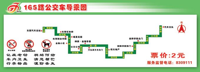 2、165路汽車五隊發(fā)車經(jīng)湖州路→遼河路→東七路→運(yùn)河路→東六路→沂河路→東五路→濰河路→東四路→南一路→膠州路→沂河路→東一路→黃河路→明鏡路→蒙山路→汽車總站,票價不變。