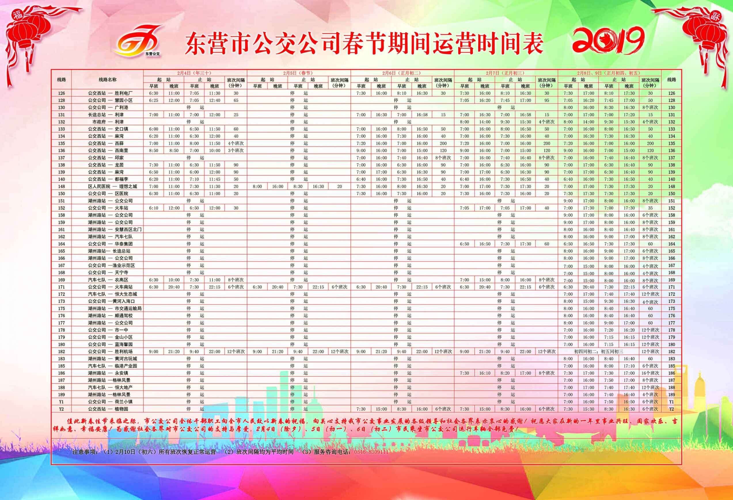 2019年東營市公交公司春節(jié)期間運營時刻表