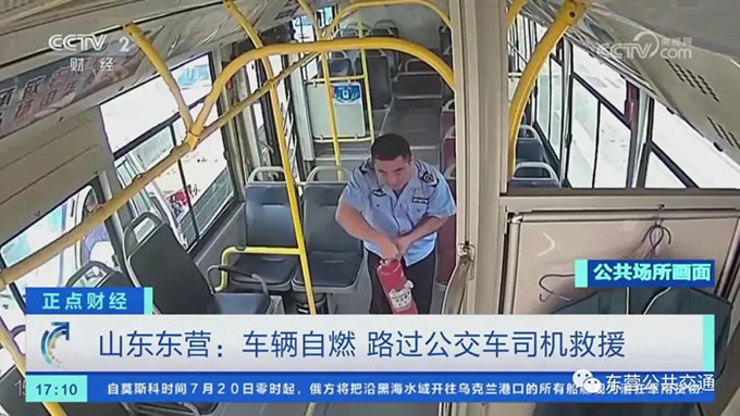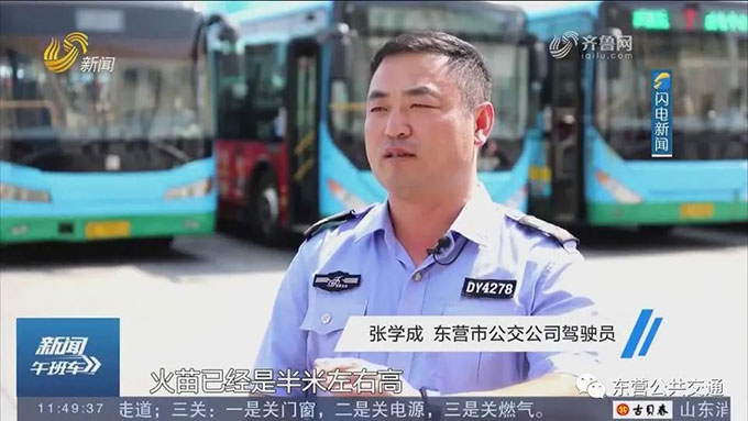 近日在東營,一輛正常行駛的車突然起火,而且是在車流量很大的道路中央。在等紅綠燈的東營公交駕駛員張學(xué)成和商衛(wèi)東看到這一情況后,紛紛拿起車上的滅火器參與救援。