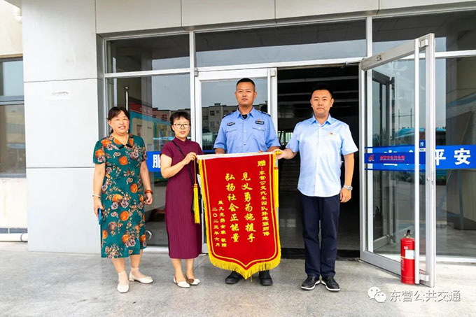 6月28日,側(cè)翻的老年代步車傷者的家屬一行來到東營市公交公司汽車四隊,他們帶著錦旗和防暑物資來感謝在危急時刻救出被困人員的東營公交駕駛員孫建強師傅。