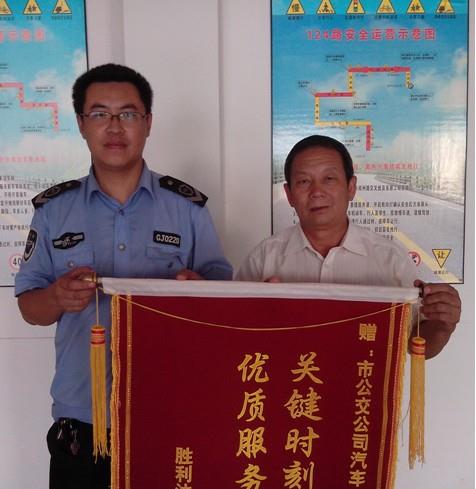 2012年8月16日,勝利油田長(zhǎng)龍橡塑有限責(zé)任公司辦公室田主任拿著一面寫有“關(guān)鍵時(shí)刻見真情 優(yōu)質(zhì)服務(wù)品德高”的錦旗來到市公交公司汽車一隊(duì),感謝車隊(duì)寧學(xué)峰師傅的高尚品德。