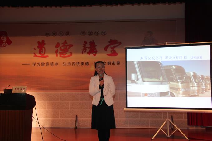 2013年9月27日晚,市公交公司第九場道德講堂活動在公司南會議室舉行,此次活動按照自我反省、唱歌曲、學(xué)模范、誦經(jīng)典、發(fā)善心、送吉祥、做點(diǎn)評七個規(guī)定環(huán)節(jié)進(jìn)行。公司特別邀請上海富禮德禮儀服務(wù)有限公司高級禮儀講師趙菊為大家做“職業(yè)文明禮儀”的講座。趙老師的演講,深入淺出,結(jié)合實(shí)際,讓我們受益匪淺。在今后的工作生活中我們必定更加“懂禮、知禮、用禮、善禮”,為廣大市民提供更加優(yōu)質(zhì)的服務(wù)。活動結(jié)束時每個人還領(lǐng)到了印有“二十四孝”的公交道德講堂折扇。