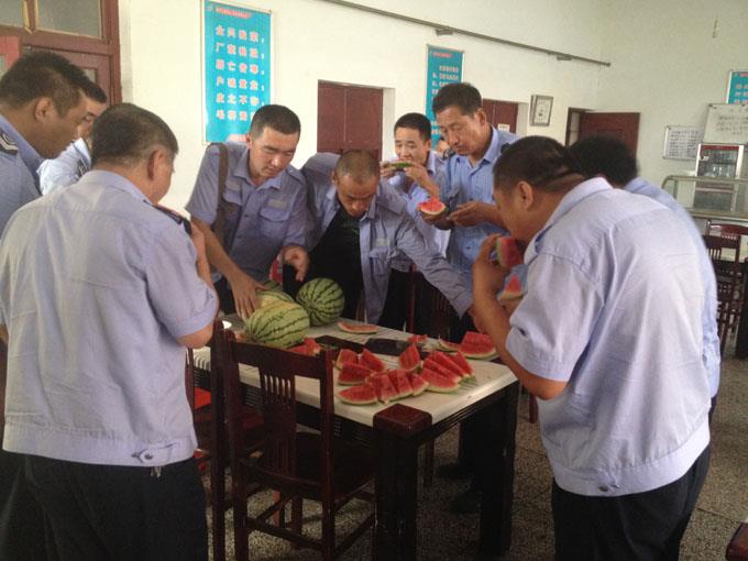 7月13日,三隊駕駛員楊海衛(wèi)自己買來2000斤西瓜,給在酷暑中堅守工作的廣大工友送來絲絲清涼。