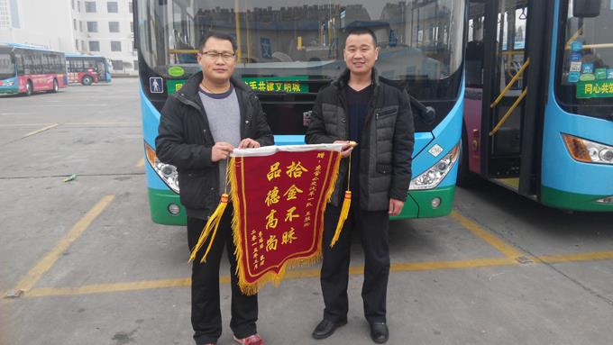 3月8日,萊商銀行的李先生拿著一面寫有“拾金不昧、品德高尚”的錦旗來到市公交公司汽車一隊,感謝3路駕駛員王勝松師傅拾金不昧的高尚品德。據(jù)車隊了解得知,2月13日晚上19時,李先生乘坐王勝松師傅駕駛的3路車來到東城,下車后發(fā)現(xiàn)裝有1600元現(xiàn)金和多張銀行卡的錢包忘在公交車上。次日,李先生抱著試試看的想法來到市公交公司汽車一隊,詢問得知駕駛員王勝松師傅已將裝有1600元現(xiàn)金的錢包上繳車隊,車隊工作人員也在想辦法聯(lián)系失主。