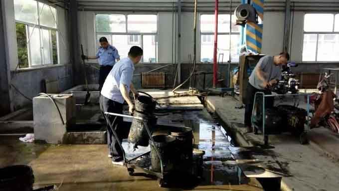 沉淀池的功能主要是將駕駛員涮洗拖把用過(guò)的廢水經(jīng)進(jìn)一步沉淀后再用作沖刷車(chē)場(chǎng)的公共廁所,這也是車(chē)隊(duì)厲行節(jié)儉、廢水二次利用的舉措之一。由于車(chē)輛保潔的需要,每天涮拖把不計(jì)其數(shù),致使沉淀池內(nèi)的水渾濁而散發(fā)著刺鼻的氣味,池底也積淀了半米之厚的黑色污泥,所以,每年度的開(kāi)春之后都得進(jìn)行一次清理。
