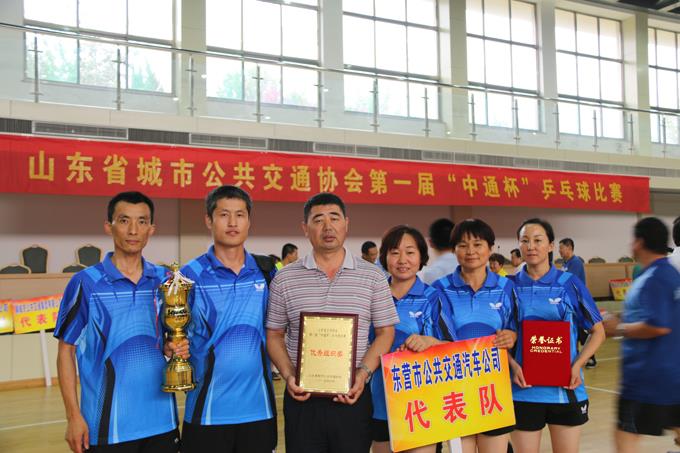 7月8日,山東省城市公共交通協會第一屆“中通杯”乒乓球比賽在章丘交通技校拉開帷幕,來自全省17地市公交系統(tǒng)的22支代表隊參加了比賽。東營市公交公司代表隊由6名選手組成,分別參加了男子團體、男子單打和女子團體、女子單打比賽,運動員們在比賽過程中揮汗如雨,積極拼搏,不到最后一刻決不放棄。歷經三天的激戰(zhàn),最終,東營公交代表隊榮獲了男子團體亞軍的好成績,張振泉獲得了男子單打第五名,同時獲得了賽事組委會頒發(fā)的“優(yōu)秀組織獎”。