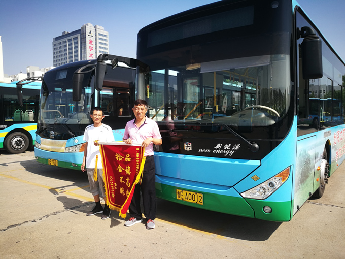 2018年6月29日上午,翟先生拿著一面寫有“品德高尚、拾金不昧”的錦旗來到市公交公司汽車一隊(duì),感謝3路駕駛員蓋曉龍師傅拾金不昧的高尚品德。