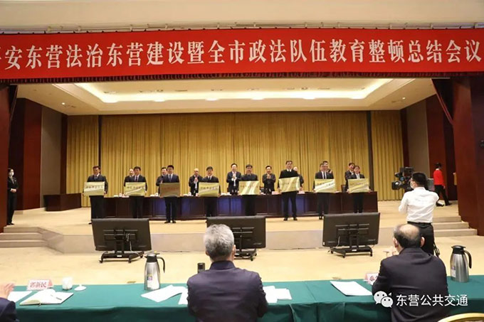 2022年3月3日下午,平安東營法治東營建設(shè)暨全市政法隊伍教育整頓總結(jié)會議召開,會議深入學(xué)習(xí)貫徹習(xí)近平法治思想和習(xí)近平總書記重要指示要求,認(rèn)真貫徹落實中央和省委有關(guān)會議精神,表揚獎勵先進,總結(jié)全市政法隊伍教育整頓工作,對深入推進平安東營、法治東營建設(shè)進行安排部署。市委書記楊國強出席會議并講話,市委副書記、市長陳必昌主持,市委副書記、政法委書記孫早軍出席。