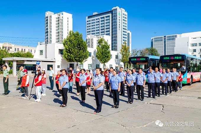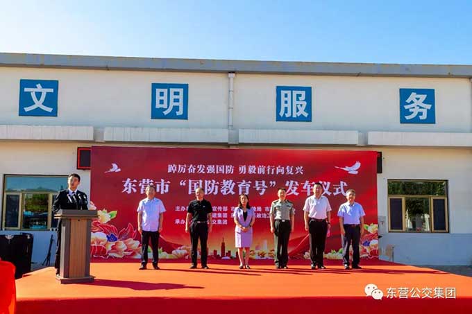 2023年9月14日上午,東營市國防教育號發(fā)車儀式在市公交集團(tuán)隆重舉行。市委宣傳部副部長邱家梅出席儀式并宣布發(fā)車,市交通運輸局黨組成員、副局長戴景鵬致辭,東營軍分區(qū)政治工作處主任王志輝、市融媒體中心副主任趙國防、市城建集團(tuán)黨委副書記張文生、市公交集團(tuán)黨委書記趙龍等參加發(fā)車儀式。