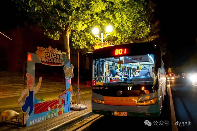 在賽事當(dāng)天,市公交集團(tuán)駕駛員凌晨三點(diǎn)半分別從汽車一隊(duì)、汽車二隊(duì)、汽車五隊(duì)、通勤車隊(duì)駐地到達(dá)了指定地點(diǎn)集結(jié)完畢。他們穿著整潔的制服,面帶微笑,熱情地迎接每一位志愿者登車。為了方便志愿者們識別,每輛公交車上都貼有明顯的“黃河口(東營)馬拉松賽事轉(zhuǎn)運(yùn)車”標(biāo)志。