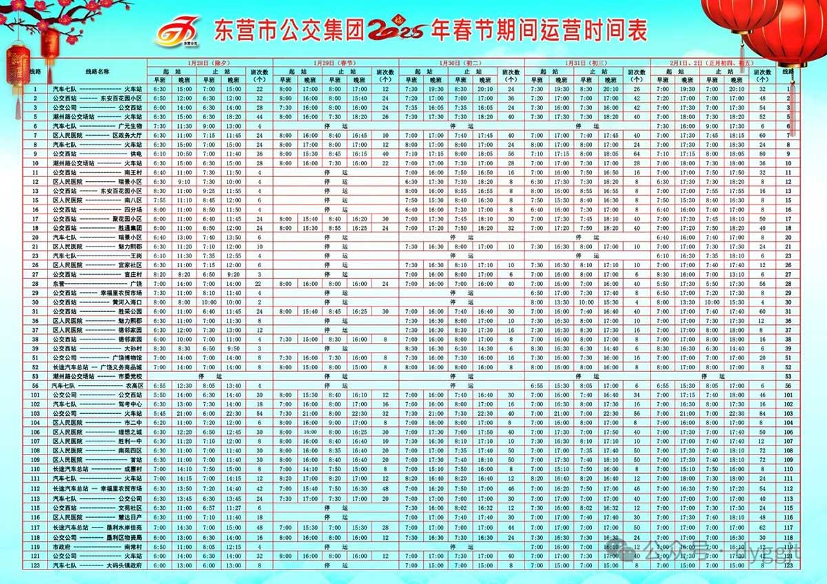 在這個(gè)新春佳節(jié)的美好時(shí)刻,東營市公交集團(tuán)全體干部職工向全市人民致以最誠摯的新年祝福,并向所有關(guān)心、支持我市公交事業(yè)發(fā)展的各級領(lǐng)導(dǎo)和社會(huì)各界人士表示衷心的感謝!愿大家在新的一年里,事業(yè)蒸蒸日上、家庭幸福美滿、吉祥如意、平安喜樂!為了回饋社會(huì)對東營市公交集團(tuán)的深情厚誼與支持,春節(jié)期間,即1月28日(除夕)、1月29日(初一)、1月30日(初二),市民乘坐東營市公交集團(tuán)所屬公交線路(高鐵快線除外)均可享受免費(fèi)乘車服務(wù)!