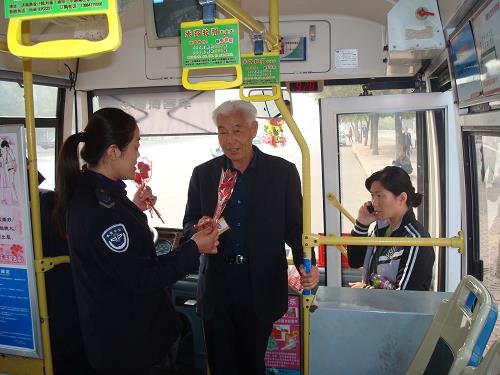 九九重陽節(jié)當(dāng)天,市公交公司8路車組的駕駛員們自費購買了鮮花送給沿途上車的老年乘客,為他們奉上一份溫馨的祝福。