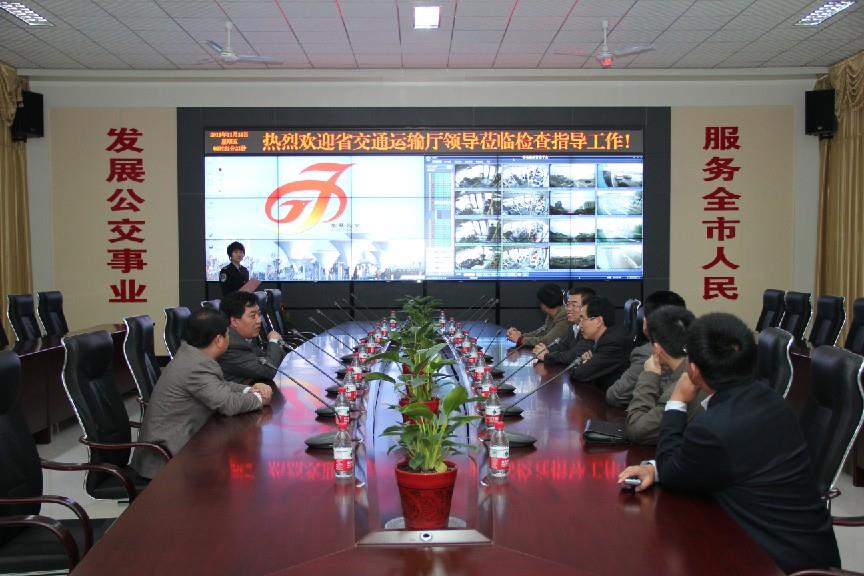 11月18日上午,省交通運(yùn)輸廳“兩保兩樹”活動(dòng)指導(dǎo)組王際遜處長(zhǎng)一行,在市交通運(yùn)輸局工會(huì)主席王愛軍、運(yùn)管處處長(zhǎng)李???、市公交公司經(jīng)理朱新民等有關(guān)領(lǐng)導(dǎo)的陪同下,到東營(yíng)公交智能調(diào)度指揮中心對(duì)3G視頻監(jiān)控系統(tǒng)進(jìn)行了檢查指導(dǎo)。