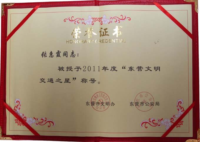 近日,在東營(yíng)市文明辦和東營(yíng)市公安局聯(lián)合組織開(kāi)展的“東營(yíng)文明交通之星”評(píng)選活動(dòng)中,市公交公司張惠霞、劉軍利、楊金光等三名公交駕駛員經(jīng)過(guò)層層選拔在1000余名候選人中脫穎而出,最終獲得了“東營(yíng)文明交通之星”榮譽(yù)稱號(hào)。