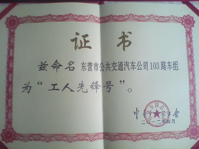 近年來,市公交公司103路車組人員把優(yōu)質(zhì)服務(wù)作為積極奉獻(xiàn)的目標(biāo),視乘客為親人,愛崗敬業(yè),無私奉獻(xiàn),出色地完成了各項營運生產(chǎn)任務(wù),得到了廣大乘客的一致好評,被親切地稱之為“滿意車”、“放心車”、“安全車”。并先后獲得山東省城建行業(yè)“文明服務(wù)標(biāo)兵”、東營市五一勞動獎?wù)隆|營市“十佳服務(wù)標(biāo)兵”、“市級工人先鋒號”、市文明委授予的“全市十佳文明示范窗口”、省總工會授予的“山東省工人先鋒號”等多項榮譽稱號,展示了公交駕駛員良好的精神風(fēng)貌,營造了和諧文明的社會氛圍。