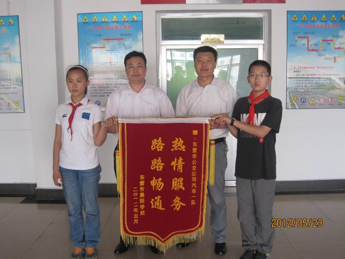 5月23日上午,市晨陽(yáng)學(xué)校師生三人拿著一面寫(xiě)有“熱情服務(wù)、路路暢通”的錦旗來(lái)到市公交公司汽車一隊(duì),感謝車隊(duì)在5月17至18日為期兩天的旅游包車中,為晨陽(yáng)學(xué)校兩千多名師生提供的熱情、周到、優(yōu)質(zhì)的服務(wù)。對(duì)近幾年公交服務(wù)質(zhì)量的不斷提升表示稱贊,并向公交廣大干部職工表達(dá)深深的敬意。