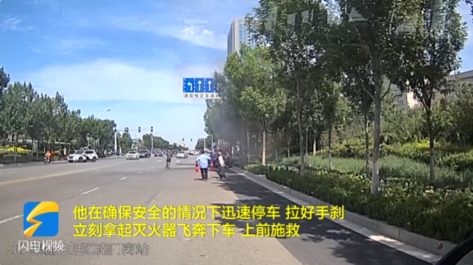 在菏澤路和西三路路口附近,看見前方有濃煙冒出,感覺就是著火了,把車停到路邊,拉好手剎,提著滅火器下去,幾分鐘就把火滅了。確認(rèn)火勢(shì)得到控制后,李斌離開了現(xiàn)場(chǎng),迅速返回到了他的工作崗位上。事后回憶起此事,他也表示這是他應(yīng)該做的。